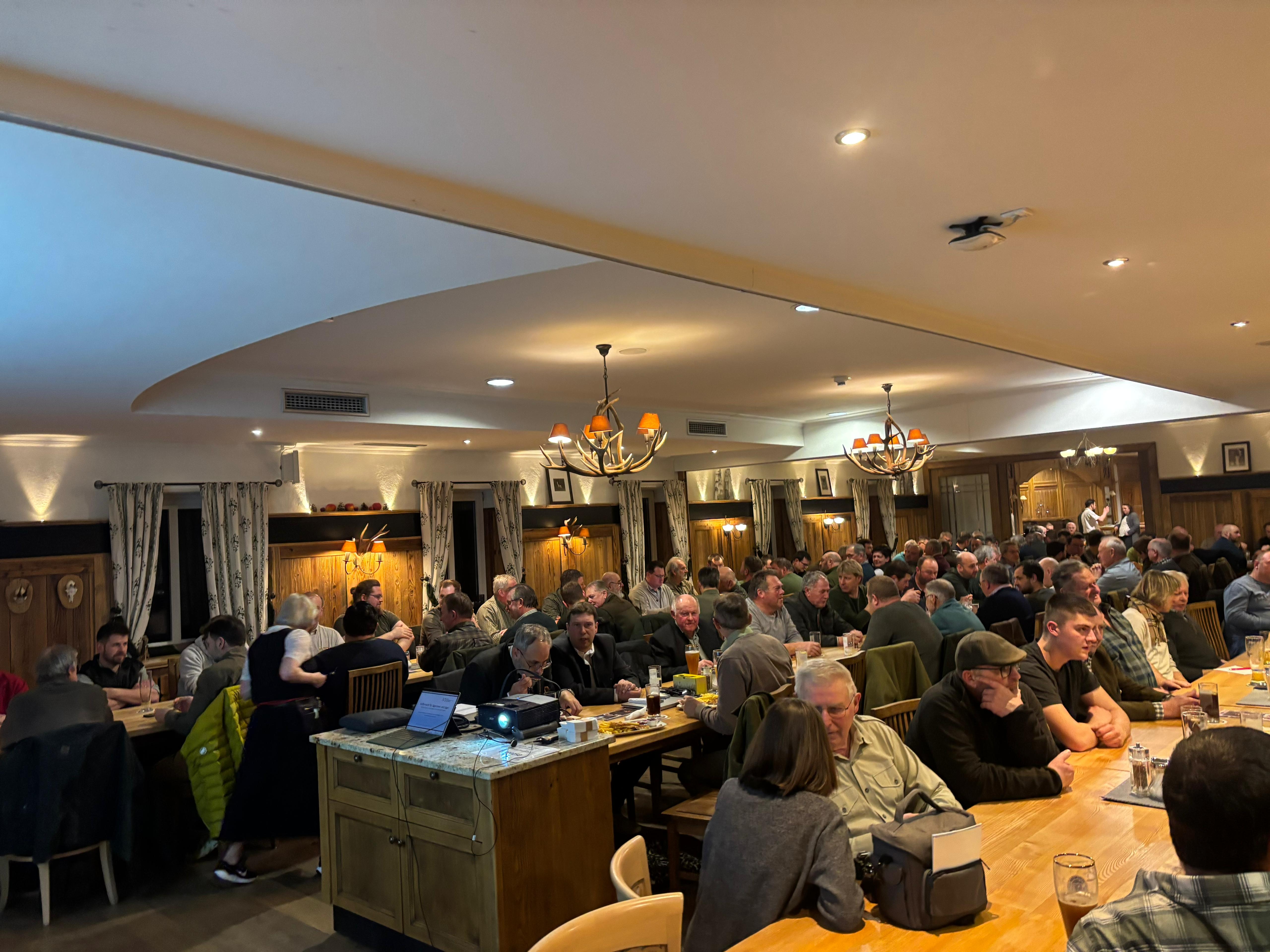 Schon vor Beginn der Veranstaltung zeigte sich das große Interesse: Der Saal füllte sich rasch, zusätzliche Sitzgelegenheiten wurden bereitgestellt, und viele Besucher nutzten die Gelegenheit, sich vorab auszutauschen. Die hohe Beteiligung machte deutlich, wie wichtig das Thema für die Jägerschaft ist – nicht zuletzt aufgrund der stetigen Weiterentwicklungen im Waffenrecht und der wachsenden Anforderungen an eine sichere Aufbewahrung.